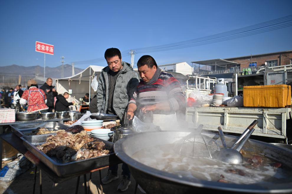 在大集上賣羊湯的商販。 新華社記者 孫凡越 攝