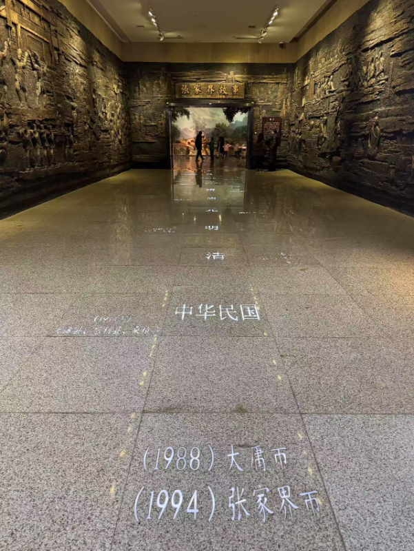 沿著展廳地面上的時(shí)間軸前進(jìn),好似時(shí)光倒流,觀眾走進(jìn)了“張家界故事”。這片土地歷史悠久,早在原始社會(huì)晚期,先民就已在澧水兩岸繁衍生息。張家界原名“大庸”,曾是古庸國所在地,1994年更名為張家界市。博物館內(nèi)萬余件藏品,無聲訴說著各個(gè)歷史時(shí)期的發(fā)展演變。
