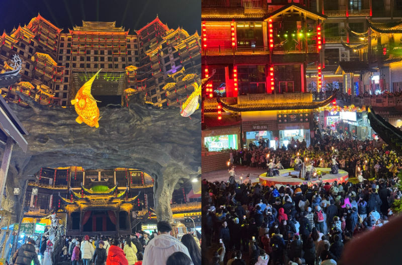 夜幕降臨,華燈初上,每晚30余場演出在被譽(yù)為“張家界文化地標(biāo)”和“夜經(jīng)濟(jì)新引擎”的七十二奇樓上演。該景區(qū)通過民俗表演、非遺體驗(yàn)等多種休閑業(yè)態(tài)吸引了大批市民和游客,夜經(jīng)濟(jì)火爆。