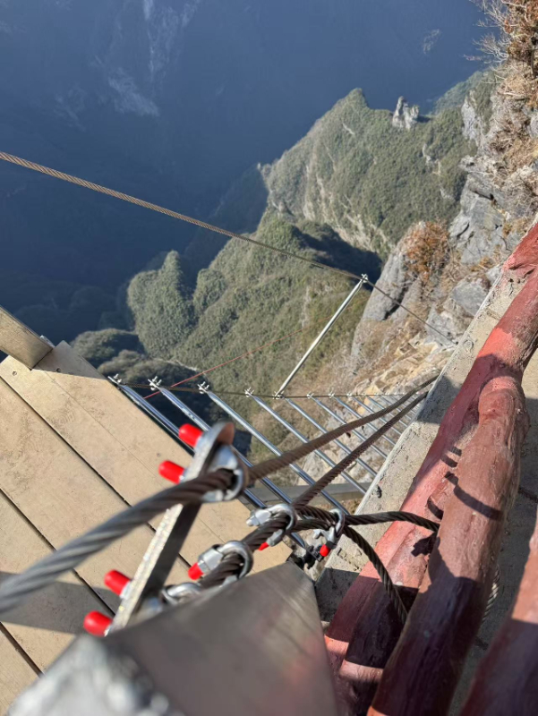 比如在新開發(fā)的七星山景區(qū),“飛拉達(dá)”攀巖項(xiàng)目因?yàn)椤爸囟润@險(xiǎn)”而火出圈——在落差1480米的崖壁之間,攀爬長達(dá)百米的懸空天梯,攀巖者四周是險(xiǎn)峻的懸崖,腳下是深不見底的山谷,“玩的就是心跳”讓這個(gè)“勇敢者的游戲”爆紅網(wǎng)絡(luò)。再比如張家界大峽谷玻璃橋“云天渡”、天門山玻璃棧道,都是用高清透明玻璃架于懸崖峭壁之間,讓人們?cè)谡鸷炒碳ぶ啵硎芰杩涨斑M(jìn)、踏云而行的樂趣。