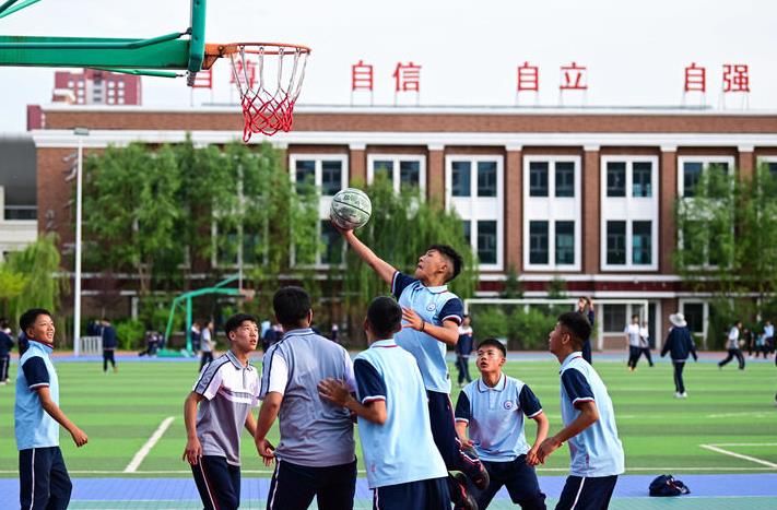 2024年6月18日,學(xué)生在青海果洛西寧民族中學(xué)打籃球。新華社記者 張龍 攝