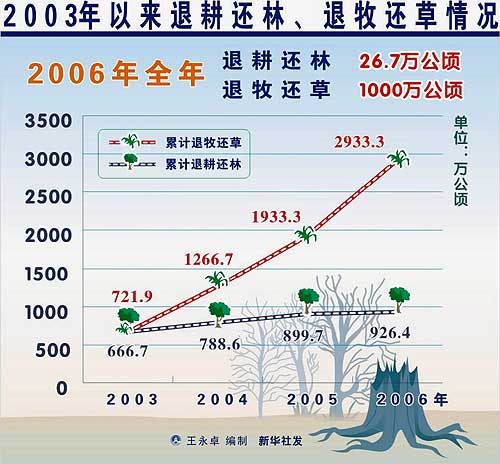 自1999年啟動以來,退耕還林工程取得了顯著的生態(tài)效益和社會經(jīng)濟效益,已成為最大的惠農(nóng)舉措之一。按原定的8年補貼期,2007年起每年將有大面積的還林地達到補貼期限。 然而,因種植的生態(tài)林、經(jīng)濟林大部分未進入收益期,來自內(nèi)蒙古、寧夏、陜西等地的全國人大代表呼吁盡快出臺接續(xù)補貼政策,鞏固退耕還林成果。