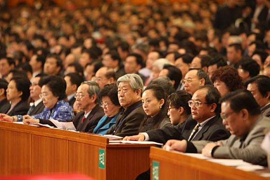 | 3月3日,中國人民政治協(xié)商會(huì)議第十一屆全國委員會(huì)第一次會(huì)議在北京人民大會(huì)堂開幕。這是委員們在認(rèn)真聽會(huì)。新華社記者
