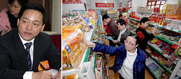 全國政協(xié)委員李立新(左圖)建議在全國實施“連鎖超市、放心店進(jìn)鄉(xiāng)村”工程。有關(guān)部門出臺相應(yīng)政策,引導(dǎo)扶持連鎖企業(yè)向農(nóng)村發(fā)展,開設(shè)連鎖超市、連鎖便利店,嚴(yán)把商品準(zhǔn)入關(guān)。