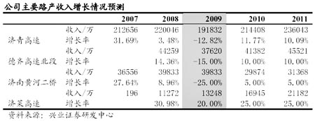 山東高速的核心業(yè)務(wù)為經(jīng)營和管理山東省境內(nèi)的濟南-青島高速公路,泰安-曲阜一級公路,濟南黃河大橋,濱州黃河大橋,平陰黃河大橋和濟南黃河二橋。從公司發(fā)展的外部環(huán)境來看,山東省內(nèi)公路通車里程、高速里程位居全國首位,逐步形成了“五縱四橫一環(huán)”的高等級公路網(wǎng)主骨架,全省“半日生活圈”基本成型。預(yù)計到2012年,高速公路將突破5000公里。穩(wěn)定持續(xù)增長的國民經(jīng)濟以及不斷完善的高速公路網(wǎng)絡(luò)將對通行費收入的增加起到強有力的拉動作用,良好的區(qū)域優(yōu)勢無疑將刺激公司業(yè)績持續(xù)向好。
