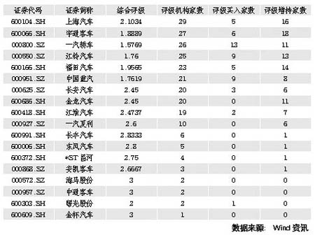 天相投顧的報(bào)告也表示,在行業(yè)投資機(jī)會(huì)上,2009年汽車行業(yè)的三大投資主題是新能源汽車、節(jié)能減排(老舊汽車報(bào)廢更新屬于節(jié)能減排)和汽車下鄉(xiāng);維持汽車及配件行業(yè)的增持投資評(píng)級(jí)?紤]到重卡行業(yè)可能進(jìn)一步出臺(tái)刺激政策,持續(xù)關(guān)注中國重汽(買入)和濰柴動(dòng)力(增持)。此外,給予增持評(píng)級(jí)的還有宇通客車、上海汽車、福田汽車和長安汽車等。