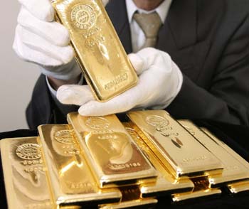 | 新華社/法新 |    黃金高位運行尚存一定風(fēng)險   去年12月2日,國際金價首次突破1200美元/盎司大關(guān),之后卻迅速回落,今年一季度曾下滑至1050美元/盎司左右。時隔5個月,國際金價于上周二再次站上1200美元/盎司的歷史關(guān)口,并在5月14日創(chuàng)下1249.7美元/盎司的歷史新高。歐洲主權(quán)債務(wù)危機是推動此輪黃金價格上漲的主要因素。“中期來說,需要持續(xù)關(guān)注歐洲問題的解決進程,如果歐洲問題難以妥善解決,很可能令經(jīng)濟二次探底,全球需求如果繼續(xù)萎縮,通縮勢必再度來臨,而黃金的珠寶性、工業(yè)性需求均已跌至很低的水平,這個時候黃金將成為最佳的投資品種,在這種局面下黃金的目標(biāo)價格至少在1300之上!备哔悹栄芯恐行馁F金屬分析師龔山強對《經(jīng)濟參考報》記者表示。