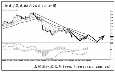 ▲歐元兌美元將最近的一條下降趨勢(shì)線升破,匯價(jià)有上行回調(diào)的欲望。但圖中均線系統(tǒng)的壓制作用完好。歐元若想回歸到漲勢(shì)當(dāng)中,需要有效升破道氏點(diǎn)阻力1.2920。短線匯價(jià)還有一次探底的需求,此波下跌的終極目標(biāo)有望看向1.2350一線。 |