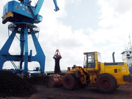 |  |  近年來,廣西北部灣經(jīng)濟(jì)區(qū)所屬口岸煤炭進(jìn)口持續(xù)高速增長,已占全國同期煤炭進(jìn)口總量的1/4,這一區(qū)域已成為全國煤炭進(jìn)口量最大的區(qū)域。預(yù)計(jì)在今后1至2年內(nèi),廣西北部灣經(jīng)濟(jì)區(qū)所屬口岸煤炭進(jìn)口總量有望突破2000萬噸,占廣西從區(qū)外調(diào)入煤炭的一半左右。圖為防城港港口的40號塔吊在給貨輪運(yùn)裝煤炭。 |  |