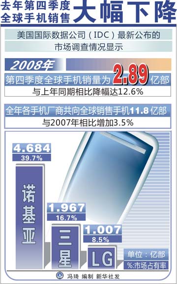 2008年第四季度全球手機(jī)銷售大幅下降[圖]