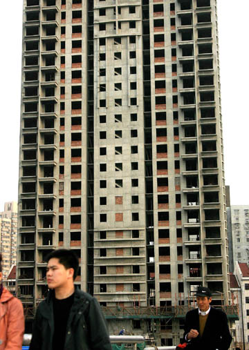 3月17日,行人從上海市江蘇路旁一正在建設(shè)中的住宅商品房前經(jīng)過。 易居中國3月16日的最新統(tǒng)計數(shù)據(jù)顯示,3月第二周(3月9日至3月15日),上海市共成交商品住宅32.38萬平方米,環(huán)比大幅上升38.3%,這是上海樓市自2007年底受宏觀調(diào)控下滑以來的近70周新高。新華社記者:陳飛