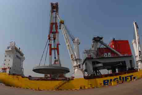 6月15日,在天津港一座碼頭,一臺(tái)大型港口起重機(jī)正在將一件600噸重的圓盤(pán)采油設(shè)備過(guò)駁荷蘭籍“幸?燔(chē)”號(hào)貨輪。當(dāng)日,天津港成功將分別重達(dá)1200噸和600噸采油設(shè)備過(guò)駁荷蘭籍“幸?燔(chē)”輪。由中國(guó)海洋石油工程有限公司制造并出口荷蘭的1200噸海上石油鉆井平臺(tái)核心構(gòu)件長(zhǎng)36.64米、寬26.35米、高23.34米。這是天津港有史以來(lái)出口的最大、最重國(guó)產(chǎn)設(shè)備。新華社發(fā)