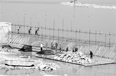 福建福清核電站3000噸級碼頭主體工程施工場景。 |