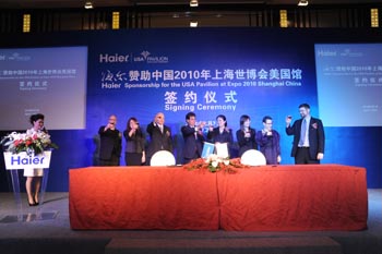 4月7日,海爾美國與世博美國館舉杯慶祝建立合作關(guān)系。 |