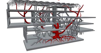 為了考慮到這個密閉小屋的空氣流通和熱量回收,“漢堡之家”的屋面安裝了中央通風(fēng)設(shè)備,為樓內(nèi)所有房間提供經(jīng)過加熱或制冷的除濕新風(fēng)。而且,這個通風(fēng)設(shè)備還帶有熱回收功能,夏天提供新鮮空氣的同時回收屋內(nèi)產(chǎn)生的熱量,回收率至少可達(dá)90%。據(jù)設(shè)計(jì)師克里斯蒂娜·魯姆舒瑟爾介紹,能量一部分來自于地下深達(dá)35米處的熱泵裝置。夏季,外部抽入的熱空氣在輸入房屋之前,經(jīng)過地下恒溫的熱泵“處理”,而后通過各樓層樓板里埋著的管道系統(tǒng)向屋內(nèi)提供;冬季,外部抽入的冷空氣,同理經(jīng)熱泵“處理”后向屋內(nèi)提供。而其余能量,主要來自于陽光以及建筑里的人與室內(nèi)電器。除了每個人、每盞燈的熱量都會被保存之外,屋頂還裝有太陽能光伏設(shè)備,面積為450平方米,可提供建筑運(yùn)營所需電能的80%左右。而一整年,“漢堡之家”每平方米平均僅耗電50千瓦時,比漢堡現(xiàn)有的最節(jié)能的“被動房”還要節(jié)能。