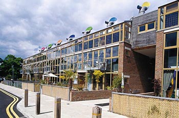 走進(jìn)英國“零碳館”,記者看到了國內(nèi)第一棟零二氧化碳排放的公共建筑。在“零碳館”屋頂上,有22個彩色風(fēng)帽,隨著風(fēng)向靈活地轉(zhuǎn)動,通過這一設(shè)計(jì),新鮮的空氣源源不斷地輸入每個房間,并將室內(nèi)空氣排出;在“零碳館”里,“空調(diào)”也不需要耗電,因?yàn)橛玫氖屈S浦江水——利用水源熱泵做成的天然“空調(diào)”。