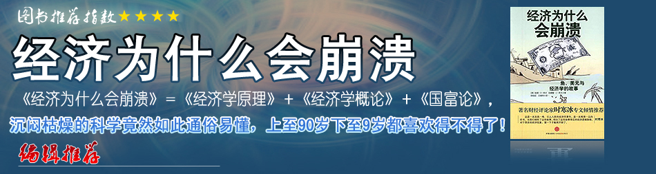 | 《經(jīng)濟(jì)為什么會(huì)崩潰》中講述的一些基本道理,幫助我們回歸常識(shí)。無論是大規(guī)模經(jīng)濟(jì)還是小規(guī)模經(jīng)濟(jì),所遵循的經(jīng)濟(jì)學(xué)原理是一樣的。比如,投資建設(shè),“只有在收益大于支出時(shí),這種投資才有效果。反之,這些項(xiàng)目就是在浪費(fèi)資源并會(huì)阻礙經(jīng)濟(jì)增長”。但很多人似乎只看到了投資建設(shè)帶來的毫無意義的虛幻的GDP數(shù)字,卻沒有看到這種高投資低回報(bào)甚至無回報(bào)的結(jié)果所帶來的巨大的財(cái)富損耗。從這個(gè)角度來看,《經(jīng)濟(jì)為什么會(huì)崩潰》講述的故事,其實(shí)與我們的生活息息相關(guān)。當(dāng)我們傾聽了這些故事,明白了這些故事背后的經(jīng)濟(jì)邏輯脈絡(luò),對(duì)于很多的經(jīng)濟(jì)現(xiàn)象,便一下子豁然開朗了。這或許正是《經(jīng)濟(jì)為什么會(huì)崩潰》的價(jià)值所在吧。 |