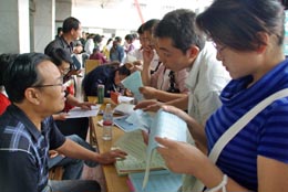9月1日至3日,甘肅省2007年公務(wù)員招考進(jìn)行報(bào)名。本次考錄采取現(xiàn)場(chǎng)報(bào)名方式,整個(gè)招考工作將在2008年1月完成。 新華社發(fā)(楊昕