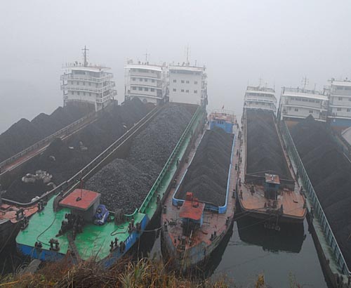 濃霧籠罩三峽庫區(qū) 3月13日上午,貨運(yùn)船舶在湖北省秭歸縣蘭陵溪村等待霧散后過閘。 受今春以來首場(chǎng)濃霧影響,三峽雙線五級(jí)船閘和下游的葛洲壩船閘均中斷通航超過10小時(shí),造成三峽庫區(qū)內(nèi)部分船舶滯留。新華社發(fā)(鄭家裕