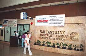 | 1998年菲律賓金融市場(chǎng)動(dòng)蕩,對(duì)銀行業(yè)是一個(gè)巨大挑戰(zhàn)。為了穩(wěn)定人心,爭(zhēng)取各戶,各銀行都貼出了告示。本報(bào)資料照片 | “三明治”先生