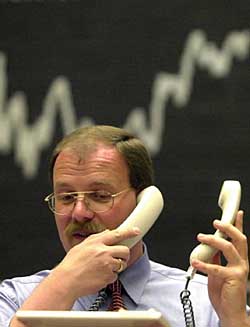 | 圖為一名交易商在法蘭克福股票交易所的DAX指數(shù)走勢(shì)圖前接電話。本報(bào)資料照片 | 德國(guó)股市關(guān)注中國(guó)概念股