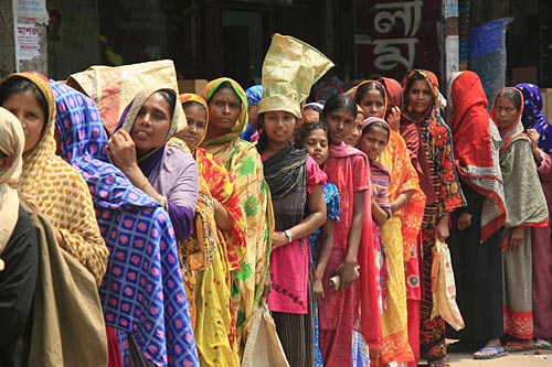 | 在孟加拉國首都達(dá)卡,人們在政府開設(shè)的平價米店前排隊(duì)買米。新華社發(fā)(扎曼