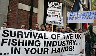 | 3日,英國和法國的漁業(yè)從業(yè)者在英國倫敦舉行示威。當(dāng)天,數(shù)百名英國和法國漁業(yè)從業(yè)者抗議油價飛漲給他們造成的生活壓力,并要求政府提供援助。新華社/法新 |  投機難脫其咎   歐盟統(tǒng)計局公布的最新數(shù)字顯示,截至今年5月,歐元區(qū)通脹率已連續(xù)9個月突破歐洲央行為維持物價穩(wěn)定所設(shè)定的2%的警戒線。其中,5月份通脹率飆升至3.6%,為12年來的最高水平。美聯(lián)儲主席伯南克3日就經(jīng)濟前景發(fā)表講話時暗示,出于對通脹形勢惡化的擔(dān)憂,美聯(lián)儲可能會停止進一步降息。他還指出,由于國際市場商品價格的持續(xù)急劇上漲,美國經(jīng)濟通脹上升風(fēng)險依然很高。而持續(xù)的高通脹可能拉升公眾的長期價格預(yù)期,進而影響消費和投資。分析人士指出,本輪通脹主要由原油和農(nóng)產(chǎn)品價格的持續(xù)攀升引起,這些大宗商品的價格上漲固然同供需基本面的失衡有關(guān),但將這種失衡無限放大并導(dǎo)致價格漲幅超出合理區(qū)間的卻是國際投機勢力。統(tǒng)計顯示,國際油價今年以來已上漲33%,至今仍在每桶130美元左右徘徊。過去兩年,很多糧食價格都已翻番,小麥、玉米和大米等糧食價格今年多次創(chuàng)下歷史新高。