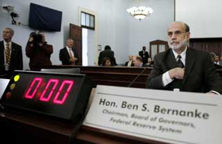 20日,在美國華盛頓國會(huì)山,美國聯(lián)邦儲(chǔ)備委員會(huì)主席伯南克(右)出席國會(huì)眾議院預(yù)算委員會(huì)舉行的一場關(guān)于經(jīng)濟(jì)復(fù)蘇的聽證會(huì)。伯南克20日表示贊同美國國會(huì)考慮出臺(tái)新的經(jīng)濟(jì)刺激方案。新華社/路透 | 美國聯(lián)邦儲(chǔ)備委員會(huì)(美聯(lián)儲(chǔ))主席伯南克20日投了民主黨一票。他當(dāng)天在美國國會(huì)眾議院預(yù)算委員會(huì)作證時(shí)指出,美國經(jīng)濟(jì)前景仍然非常地不確定,經(jīng)濟(jì)疲軟可能持續(xù)幾個(gè)季度,同時(shí)表示贊同美國國會(huì)考慮出臺(tái)新的經(jīng)濟(jì)刺激方案。 此前,眾議院(由民主黨把持)議長南!づ迓逦骱兔裰鼽h國會(huì)議員曾建議國會(huì)在11月4日總統(tǒng)選舉后通過一項(xiàng)總額1500億美元的經(jīng)濟(jì)刺激方案,旨在“把更多錢直接放進(jìn)美國民眾口袋”。 業(yè)內(nèi)人士認(rèn)為,伯南克在字里行間中透露出了他對(duì)美國經(jīng)濟(jì)衰退的更多擔(dān)憂,因而猜測(cè)美聯(lián)儲(chǔ)將在下周舉行的貨幣政策會(huì)議上下調(diào)聯(lián)邦基金利率。