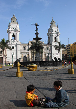 15日,兩名兒童在秘魯首都利馬老城的馬約爾廣場(chǎng)上玩耍。始建于1535年的利馬是秘魯?shù)恼巍⒔?jīng)濟(jì)和文化中心,集中了全國(guó)1/4以上的人口,城區(qū)分為新城和老城兩部分。其中位于西北部的老城保留了大量殖民地時(shí)期的建筑,已被列入“世界文化遺產(chǎn)”。11月22日至23日,亞太經(jīng)合組織(APEC)第16次領(lǐng)導(dǎo)人非正式會(huì)議將在秘魯首都利馬舉行。新華社記者
