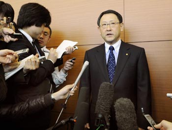 2月19日,豐田汽車公司總裁豐田章男在日本名古屋接受記者采訪。當日,豐田章男表示,他將出席美國國會眾議院監(jiān)督和政府改革委員會24日就豐田召回問題舉行的聽證會,“誠心誠意”聽取意見,直接作出說明,讓美國人“理解豐田的想法”。新華社/共同社 |