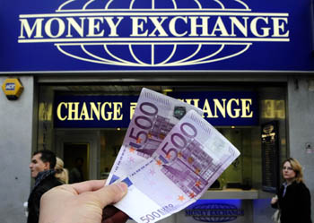 英國外匯交易商從5月13日起,停止兌賣面額為500的歐元紙幣。新華社記者 曾毅 攝
