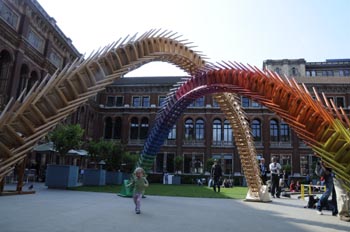在倫敦設(shè)計(jì)節(jié)期間,各種創(chuàng)意隨處可見。在維多利亞和埃爾伯特博物館的廣場上,藝術(shù)家們用椅子搭起一道道彩虹。新華社記者 王亞宏