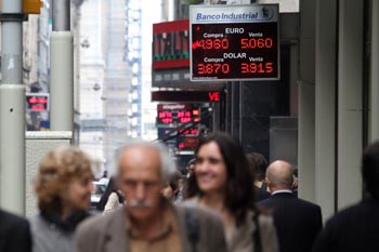 阿根廷首都布宜諾斯艾利斯,人們從市中心一家貨幣兌換機(jī)構(gòu)門前走過,歐洲債務(wù)危機(jī)影響南美金融市場。新華社發(fā) |