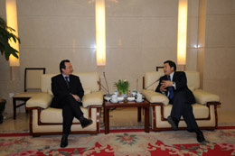 新華社副社長魯煒會見劉志超(左)。 | 本報訊