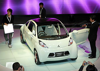 | 日本汽車銷售協會聯合會新任會長天野洋一近日表示,2007財年日本國內新車銷售有可能出現五年以來的首次增長。他認為,高油價使一批消費者更換小車,這對汽車銷售有一定的促進作用。圖為在東京車展上,一輛日本三菱汽車公司的iMiEV