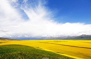 | 每年7月,地處祁連山麓的青海省門源回族自治縣60多萬畝油菜花競(jìng)相綻放,形成高原地區(qū)壯觀奇美的“百里油菜花!。新華社記者