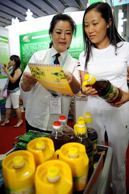 西部少數(shù)民族特產(chǎn)勇闖中博會(huì)。9月23日,來(lái)自貴州省綠原食品開(kāi)發(fā)有限公司的業(yè)務(wù)員在展會(huì)上向客商推介野生刺梨果汁。新華社記者:周文杰