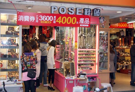 1月18日,臺(tái)北鬧市西門(mén)的一家商鋪打出優(yōu)惠標(biāo)語(yǔ),吸引顧客用消費(fèi)券消費(fèi)。新華社記者:李凱攝 | 據(jù)新華社臺(tái)北1月18日電