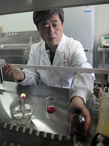 國家首批生物產(chǎn)業(yè)基地之一的長春市,著力打造實驗動物繁育與實驗中心、基因工程藥物實驗中心、生物酶工程技術中心、疫苗研發(fā)工程中心、藥物篩選中心、中藥制劑工程研究中心、中藥前處理公共平臺、輻照滅菌裝置中心、食品藥品檢驗中心、醫(yī)藥科技信息咨詢服務中心等十大公共平臺。 圖為東北師范大學教育部農(nóng)業(yè)與醫(yī)藥基因工程研究中心、藥物基因和蛋白篩選國家工程實驗室的工作人員在進行藥物篩選實驗。 | |