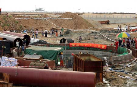 自6月10日19時(shí)45分許?谑邪咨抽T污水處理廠擴(kuò)建項(xiàng)目排海工程透水事故發(fā)生以來(lái),5名失蹤工人已被封閉在排海管中長(zhǎng)達(dá)20小時(shí),生存的希望幾乎為零。目前事故處置工作重心已由搜救轉(zhuǎn)為搜尋失蹤者。這是搜救工作現(xiàn)場(chǎng)。