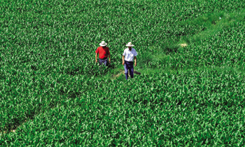 技術人員從張掖市甘州區(qū)成片的制種玉米中走過。本報記者 韓傳號
