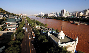 從纜車(chē)上拍攝的黃河及蘭州市區(qū)。本報(bào)記者 韓傳號(hào)/攝 |