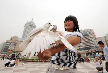 蘭州廣場(chǎng)鴿。本報(bào)記者