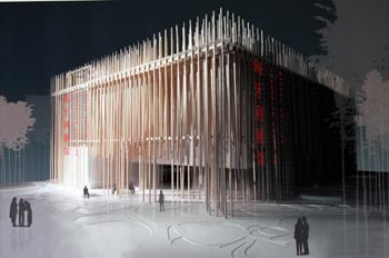 多民族文化的“交響”   新加坡展館設(shè)計的另一大亮點即是四根形狀各異的立柱,它們沿著平滑的曲線從樓頂懸吊下來,貫穿上下,相互映襯,張力之間形成一種令人嘆為觀止的平衡。而這四根立柱,正象征著新加坡和諧共存、同甘共苦的多元種族。新加坡的繽紛多彩,不僅得益于各民族的相互交融,還基于東西方文化的充分交流。而這一點從陳家毅本人的經(jīng)歷中就可見一斑。陳家毅學(xué)成于新加坡本土和倫敦,在英國駐留20余年,并在新加坡、倫敦、伊斯坦布爾同時執(zhí)業(yè)。如此交雜的東西方文化背景,讓他對于建筑設(shè)計總抱著“無界”的心態(tài)!案鞣N文化的差異,并不能構(gòu)成它們之間的界限;界限往往源自內(nèi)心的狹隘與封閉!标惣乙阏f。
