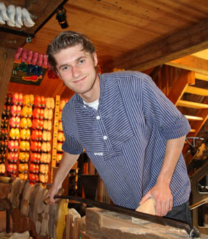 年輕的工匠展示制作木鞋記者 潘治/攝