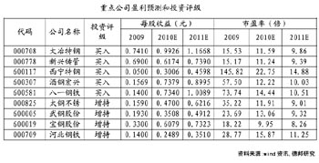 鋼鐵業(yè)還有其他兩類題材也可以關(guān)注,就是特鋼公司和受益區(qū)域經(jīng)濟發(fā)展的公司。 愛建證券發(fā)布的報告表示,下半年具體投資策略可遵循以下思路:一類是特鋼行業(yè),如大冶特鋼、中原特鋼等,另一類是受益于區(qū)域經(jīng)濟大發(fā)展的公司如八一鋼鐵。 報告稱,特鋼行業(yè)盈利較普鋼行業(yè)更穩(wěn)定。由于特鋼行業(yè)從生產(chǎn)工藝到產(chǎn)品用途與普通碳鋼都有著很大差別,因此普通碳鋼所面臨的諸如產(chǎn)能過剩、原材料價格上漲對特鋼而言,都不會構(gòu)成太大的問題。而且特鋼產(chǎn)品具有良好市場前景,從過去幾年的情況看,特鋼產(chǎn)品即便有成本上漲壓力也能夠通過向下游提價轉(zhuǎn)移釋放,使毛利率繼續(xù)保持穩(wěn)定。因此可以看到,在最近一年的走勢中,特鋼股票明顯要強于普鋼股票。下半年仍可關(guān)注特鋼類上市公司,如大冶特鋼、中原特鋼等。 區(qū)域經(jīng)濟發(fā)展也將帶來一定機會。該券商報告表示,中期來看,到2015年新疆人均地區(qū)生產(chǎn)總值達到全國平均水平,城鄉(xiāng)居民收入和人均基本公共服務(wù)能力達到西部地區(qū)平均水平,基礎(chǔ)設(shè)施條件明顯改善,“十二五”期間新疆全社會固定資產(chǎn)投資規(guī)模將比“十一五”期間翻一番多;長期來看,到2020年,確保實現(xiàn)全面建設(shè)小康社會的奮斗目標(biāo),基本消除絕對貧困現(xiàn)象。預(yù)計中央會繼續(xù)加大對新疆地區(qū)的基礎(chǔ)設(shè)施投入,包括電網(wǎng)、鐵路、公路的建設(shè)和部分地區(qū)的住房改造。因此,未來幾年新疆地區(qū)的鋼材需求增速將大大高于國內(nèi)平均水平,這將讓疆內(nèi)唯一的鋼鐵公司——八一鋼鐵受益不少。 東方證券也表示,從結(jié)構(gòu)看,具備產(chǎn)品優(yōu)勢和區(qū)域優(yōu)勢的鋼鐵公司,目前調(diào)整后的股價已經(jīng)具有吸引力。重點推薦:大冶特鋼、八一鋼鐵、寶鋼股份。