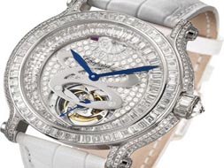 過(guò)去幾年蕭邦推出了多款不同的陀飛輪系列:L.U.C陀飛輪經(jīng)典系列、L.U.C陀飛輪鋼翼腕表、L.U.C陀飛輪傳統(tǒng)腕表等,如今則為女士們特別制造了這款異常華美的L.U.C