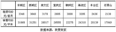 2010年8月北京區(qū)域二手房市場月度租、售價比較