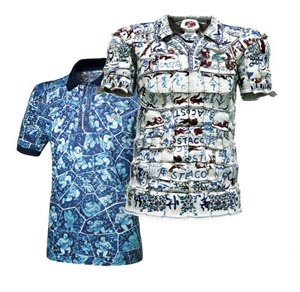 片,女裝Polo 衫用了304 片),并在真人尺寸的數(shù)碼樣板上將它們一一拼至Polo 衫的前身、后背以及袖子上,制成了一件青花瓷的Polo