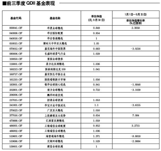 前三季度QDII基金表現(xiàn)